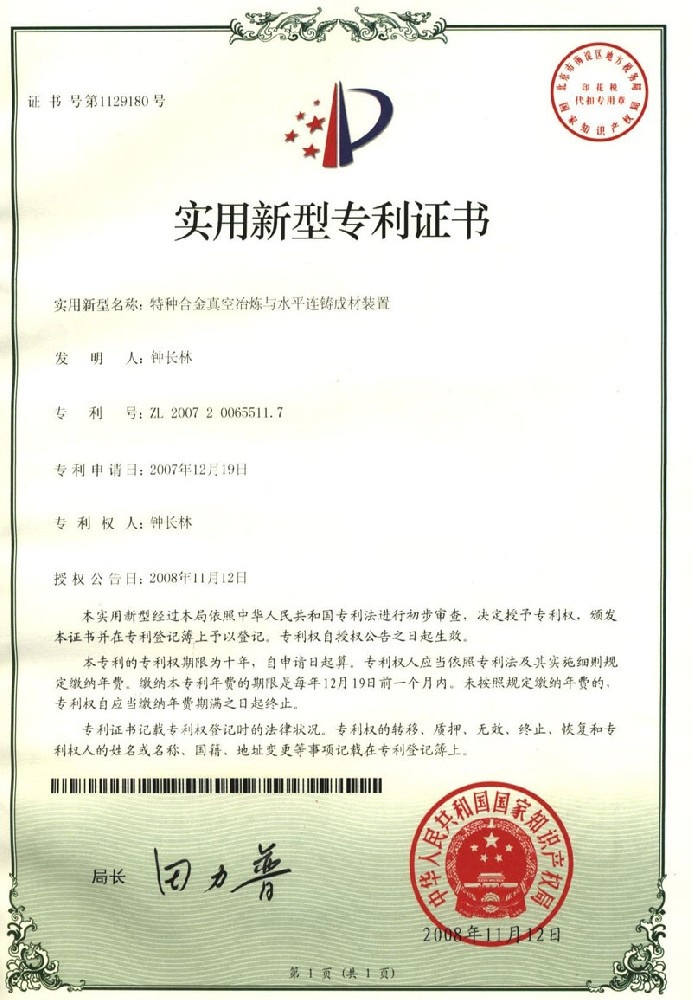 發(fā)明專利證書 |